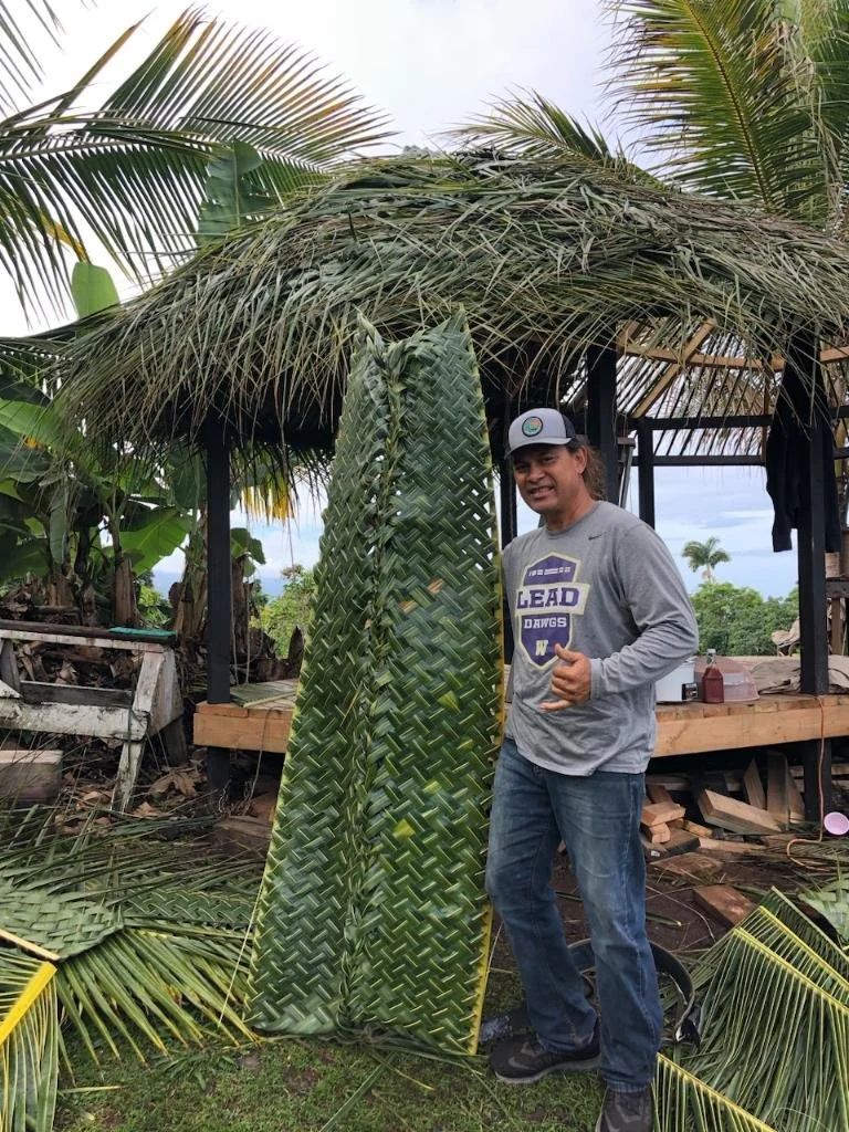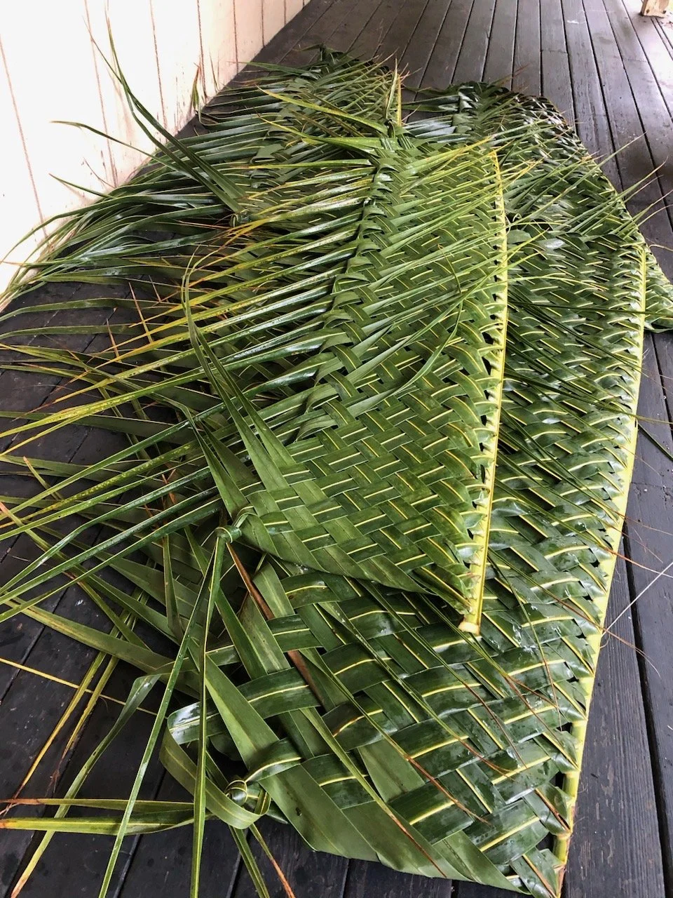 Here you will find both green and brown products. Coconut leaves start off as a vibrant green, however over time they dry into a beautiful neutral brownish-tan color and stay that way. All products are hand-crafted by the Master Weaver himself, Luki. All products can be taught in a class or demonstrated in person by Luki. Products can also be personalized based on the item/sizing. Below you will find many photo examples of what Luki creates including: different style hats, baskets of many sizes, placemats for dinner table set up, headbands, windmills, rocket launcher, fish, rose, cricket, fan, plates, broom for sweeping, traditional skirts for dancing, greenery walls and decor for special events, traditional “Fale” (outhouse hut) building and coconut weaved roofing, covered weaving (ex: post, poles, table) and more.
